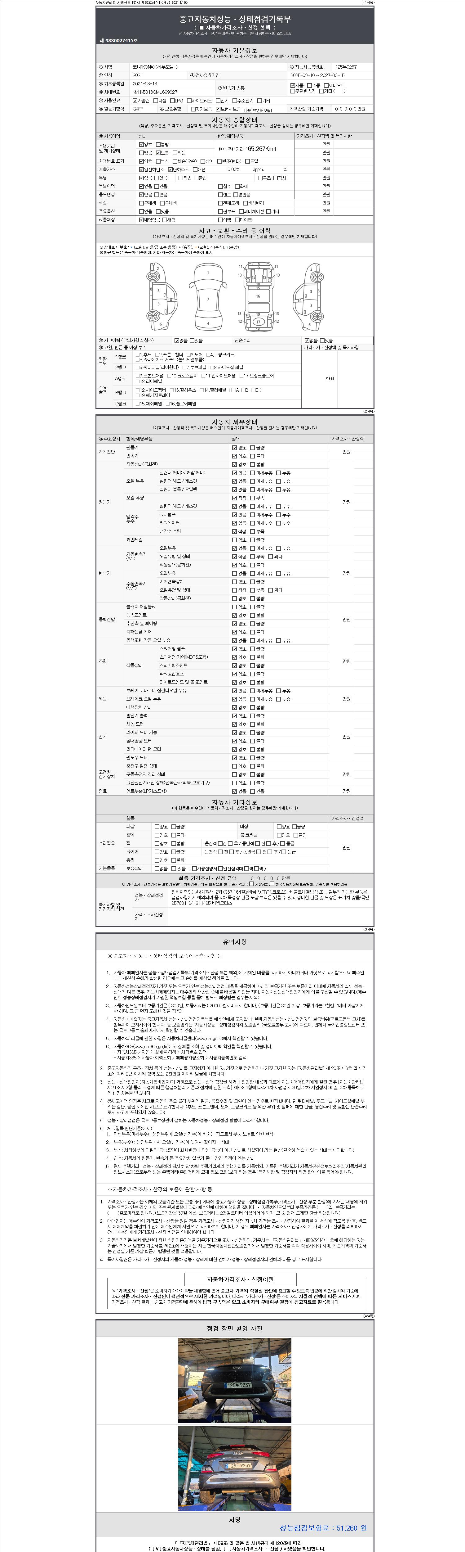 | 주행거리 | 65,267 km | 차량번호 | 125누9237 | 사고유무 | 성능기록부 참조 | 제시번호 | 제 2147483647 호 |