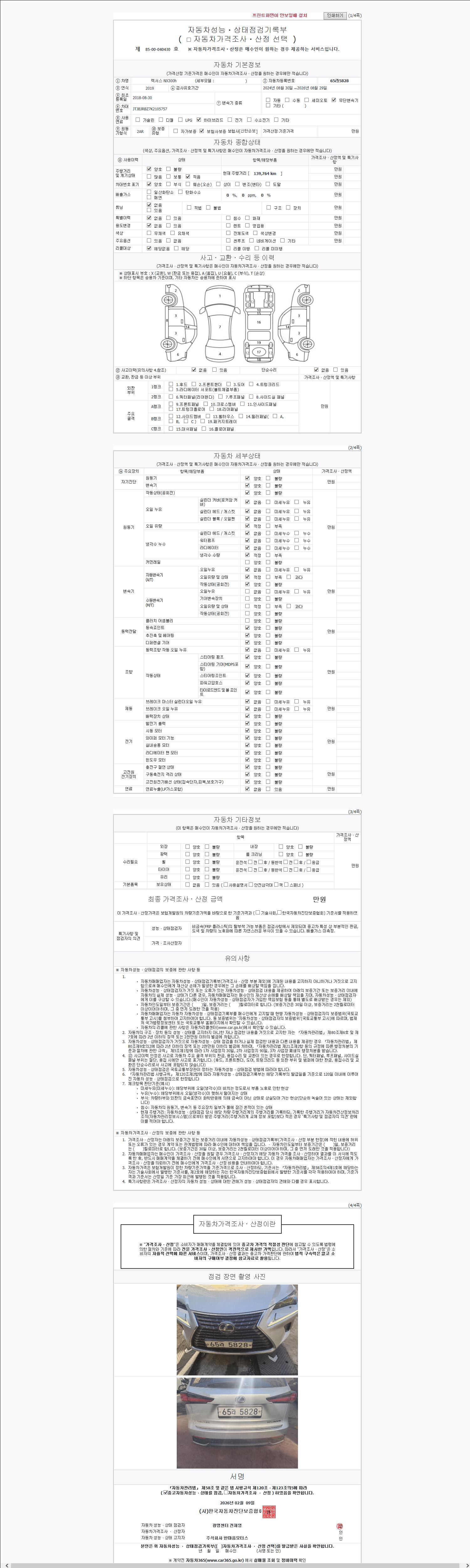 | 주행거리 | 139,764 km | 차량번호 | 65라5828 | 사고유무 | 성능기록부 참조 | 제시번호 | 제 2147483647 호 |