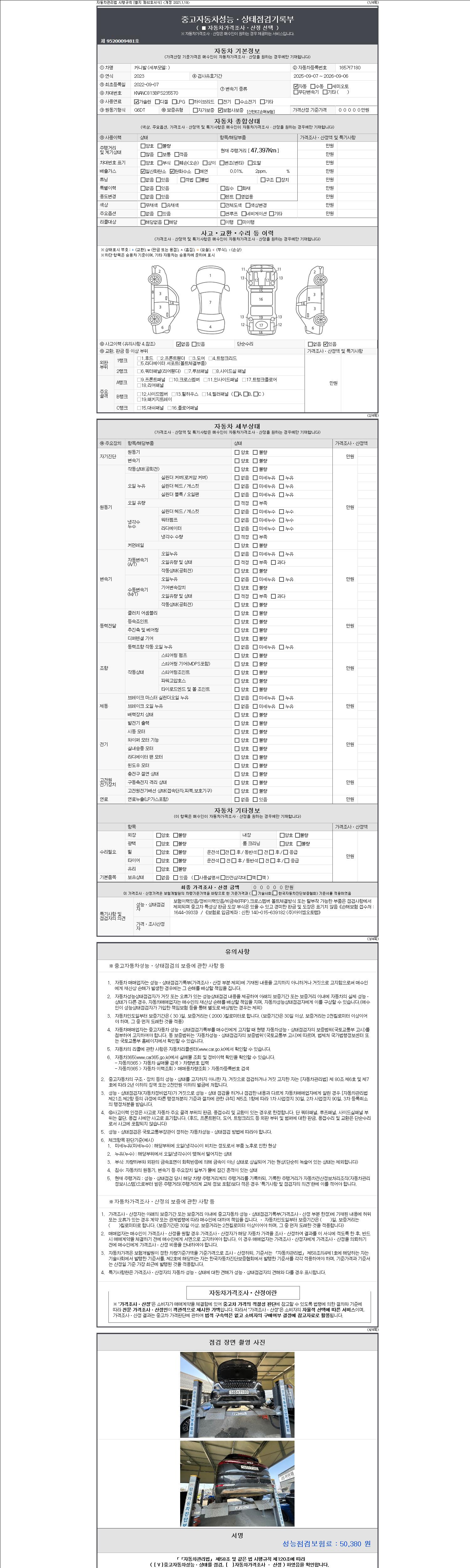 - 2. 차량 등록증이나 성능점검지 등을 상담자에게 요청및 확인하시고 사전에 미리 점검 하시기를 권유드립니다.